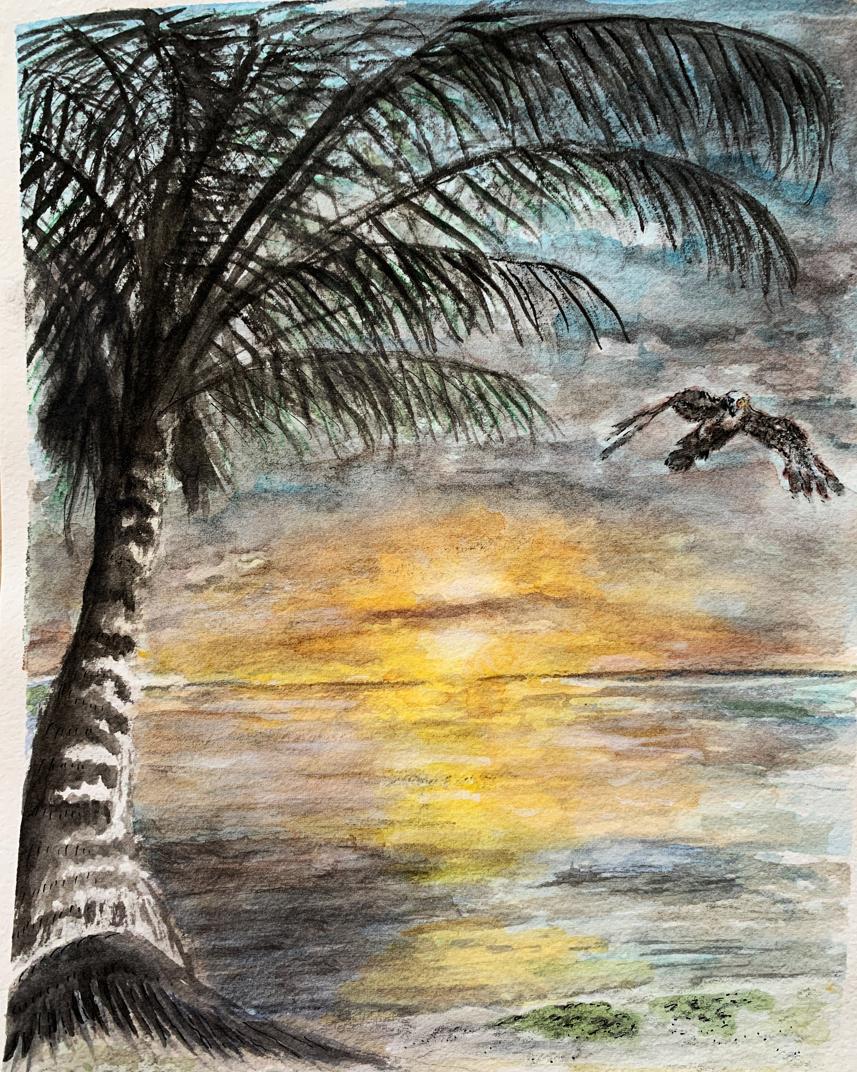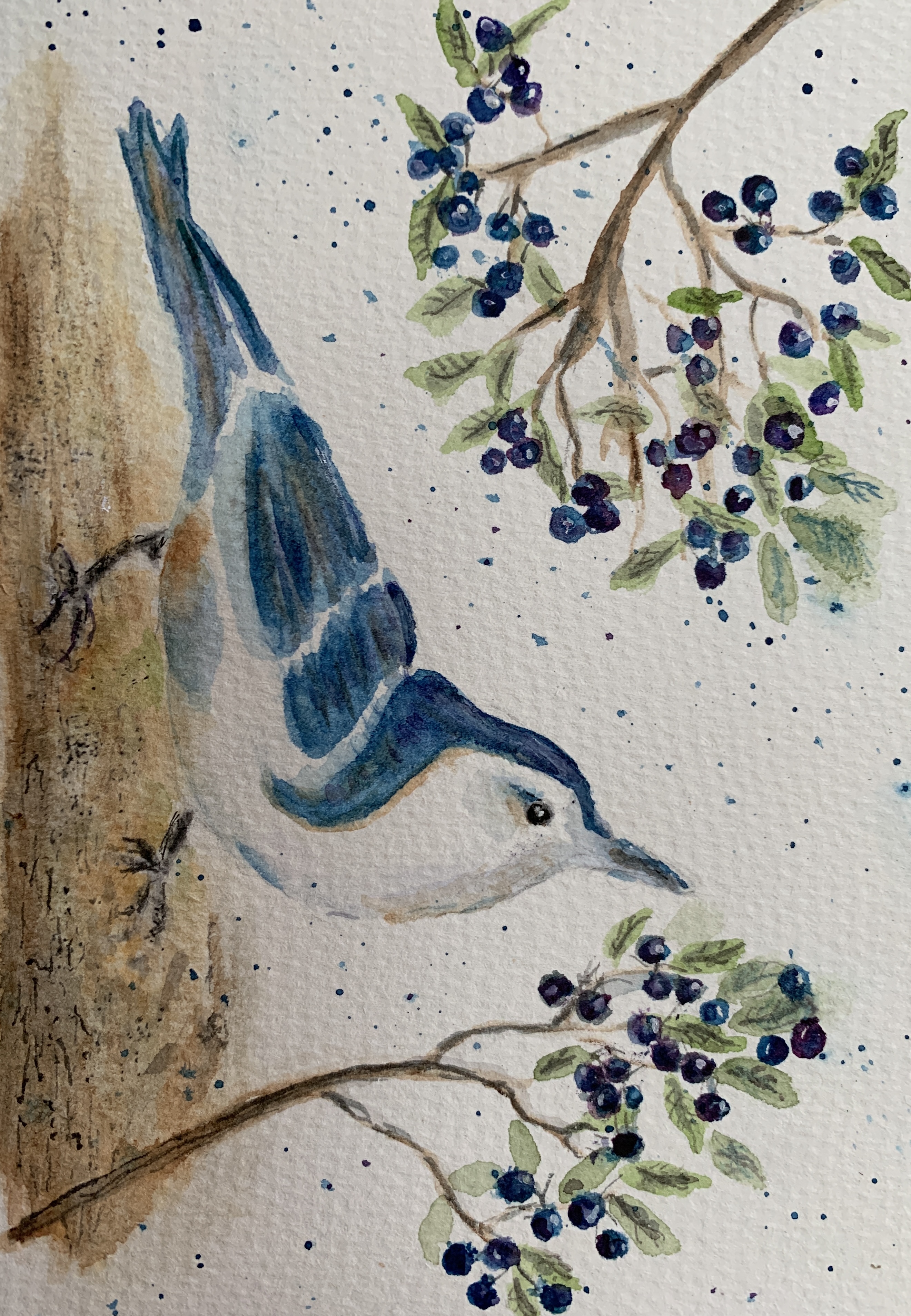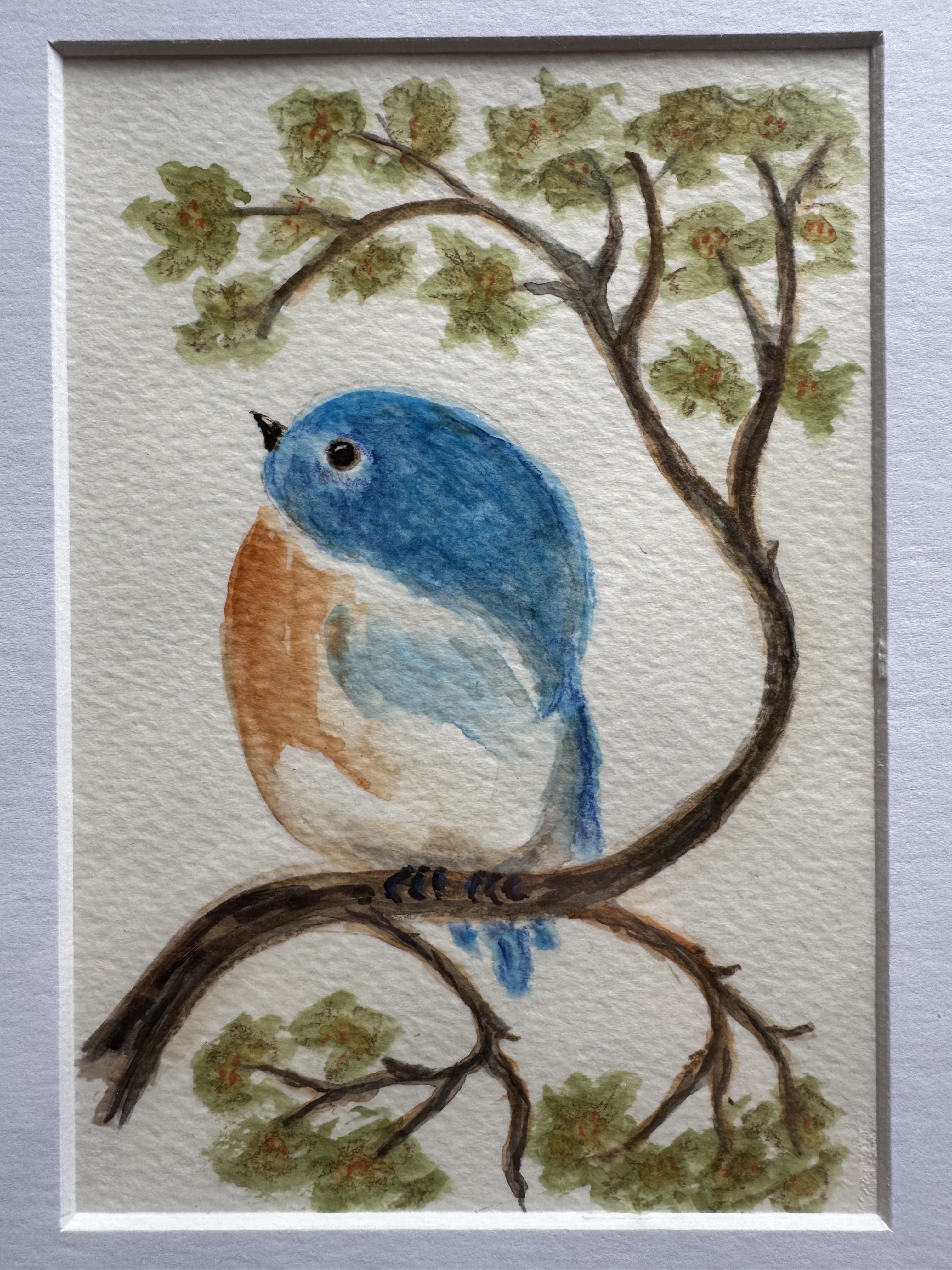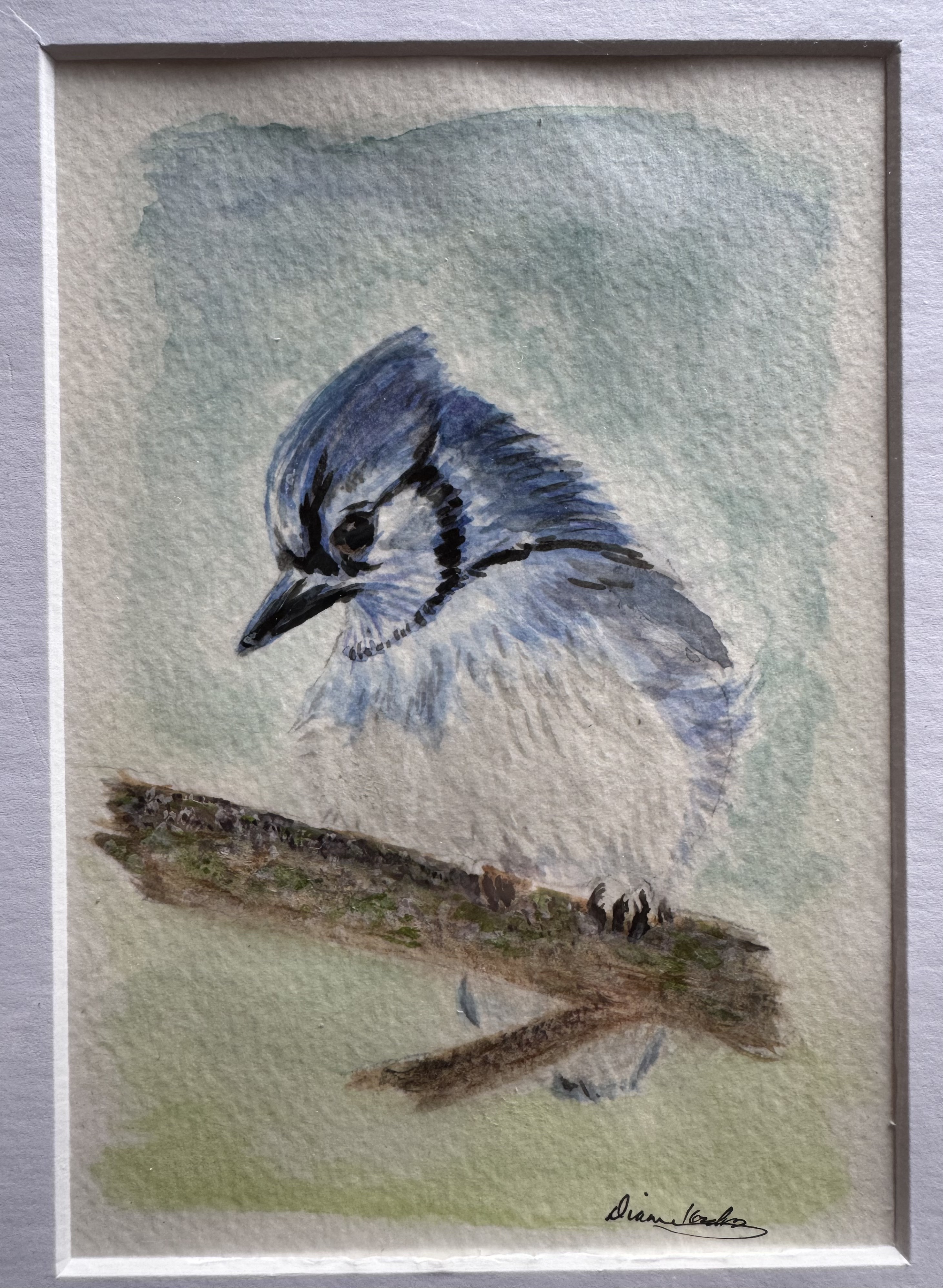 Blue Heron 8 x 10″ watercolor, 11 x 14 ” matted. $70 USD add S&H